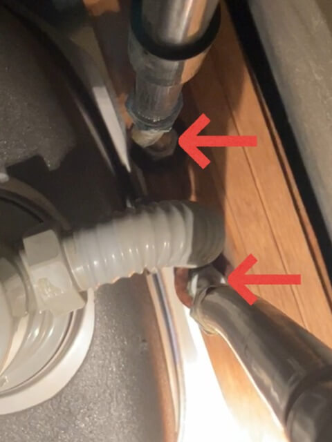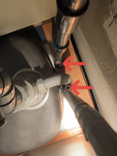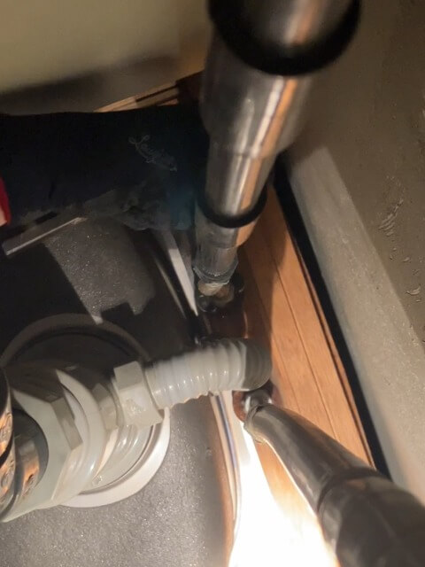 最後にフレキ管の袋ナットを蛇口に取り付けることで水が通ります。