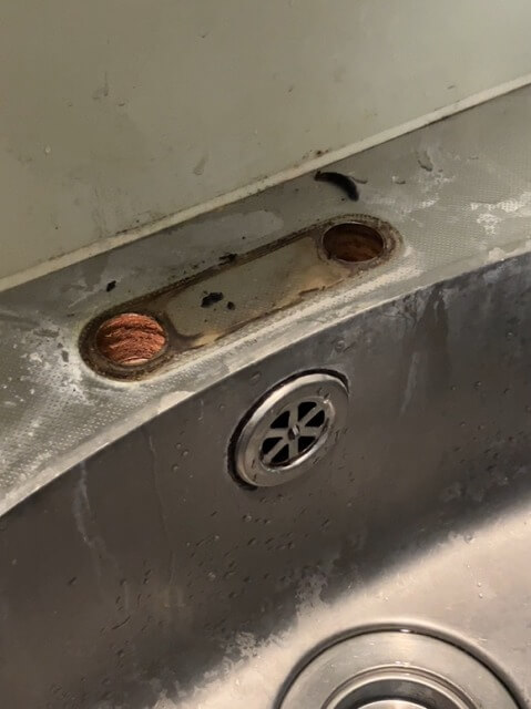 それではツーホール混合水栓の交換をしていこうと思いますが、まずはツーホール混合水栓がどのように取り付け(設置)されているのかを解説していきます。