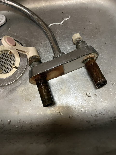 この現場の水栓はスピンドルなどを既に交換済みですので、この症状を解消する方法は水栓本体の交換となります。