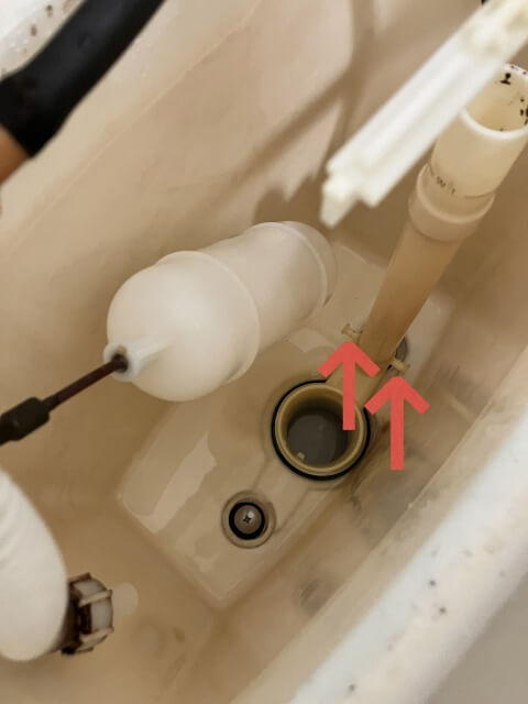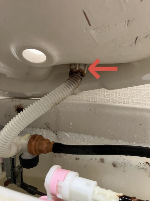 排水弁は上の画像の赤矢印の部分にはまっています。
