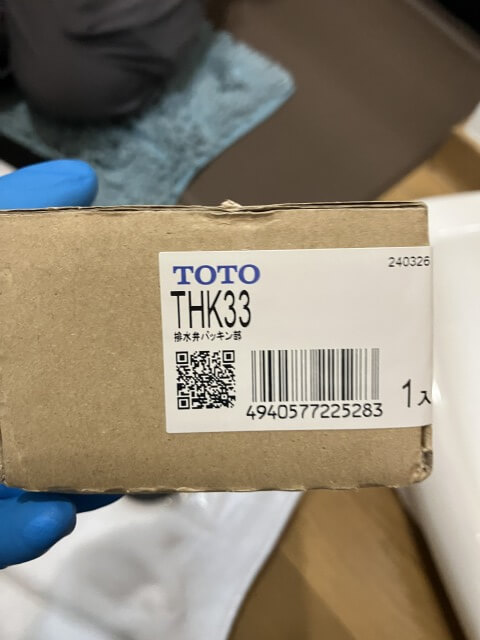 今回使用する排水弁パッキンはTOTO製のTHK33です。