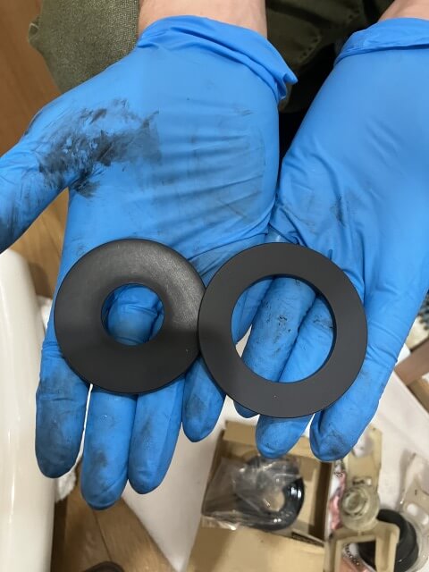 以上のことを考えると排水弁パッキンが劣化して、タンクに水を留めておくことができていないと判断できました。