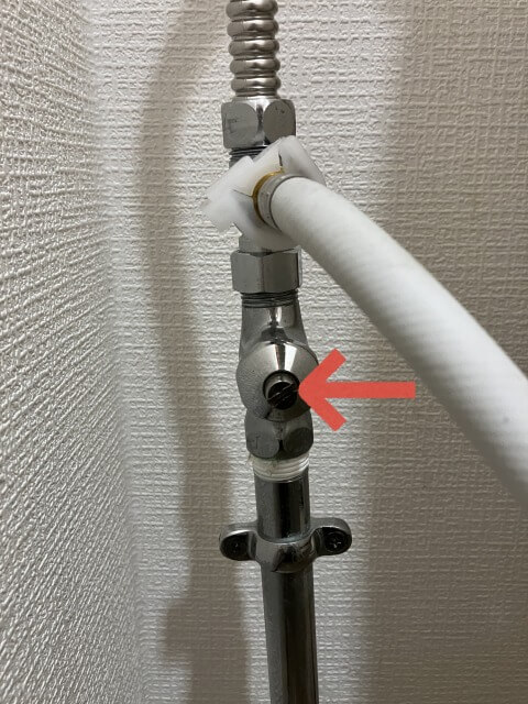 上の画像の赤矢印の部分にマイナスドライバーを挿して時計回りに回すと止水ができます。